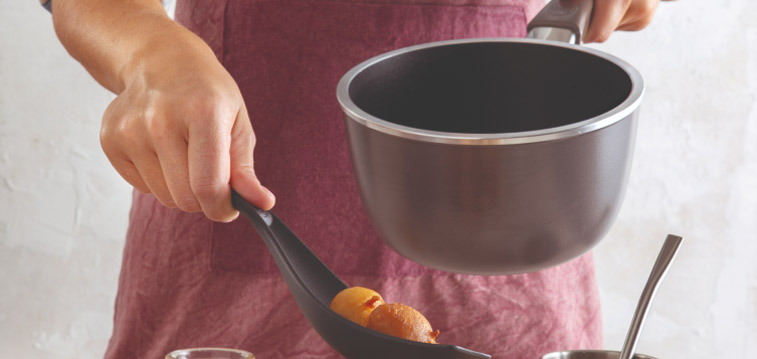 Con Essen la comida no se pega. Nuestros productos son más fáciles de limpiar. Utilizamos esmaltes vitroporcelanizados de gran resistencia para el exterior de los productos. En su interior utilizamos antiadherente NOVA TRIMIUM de tres capas de la más alta calidad.